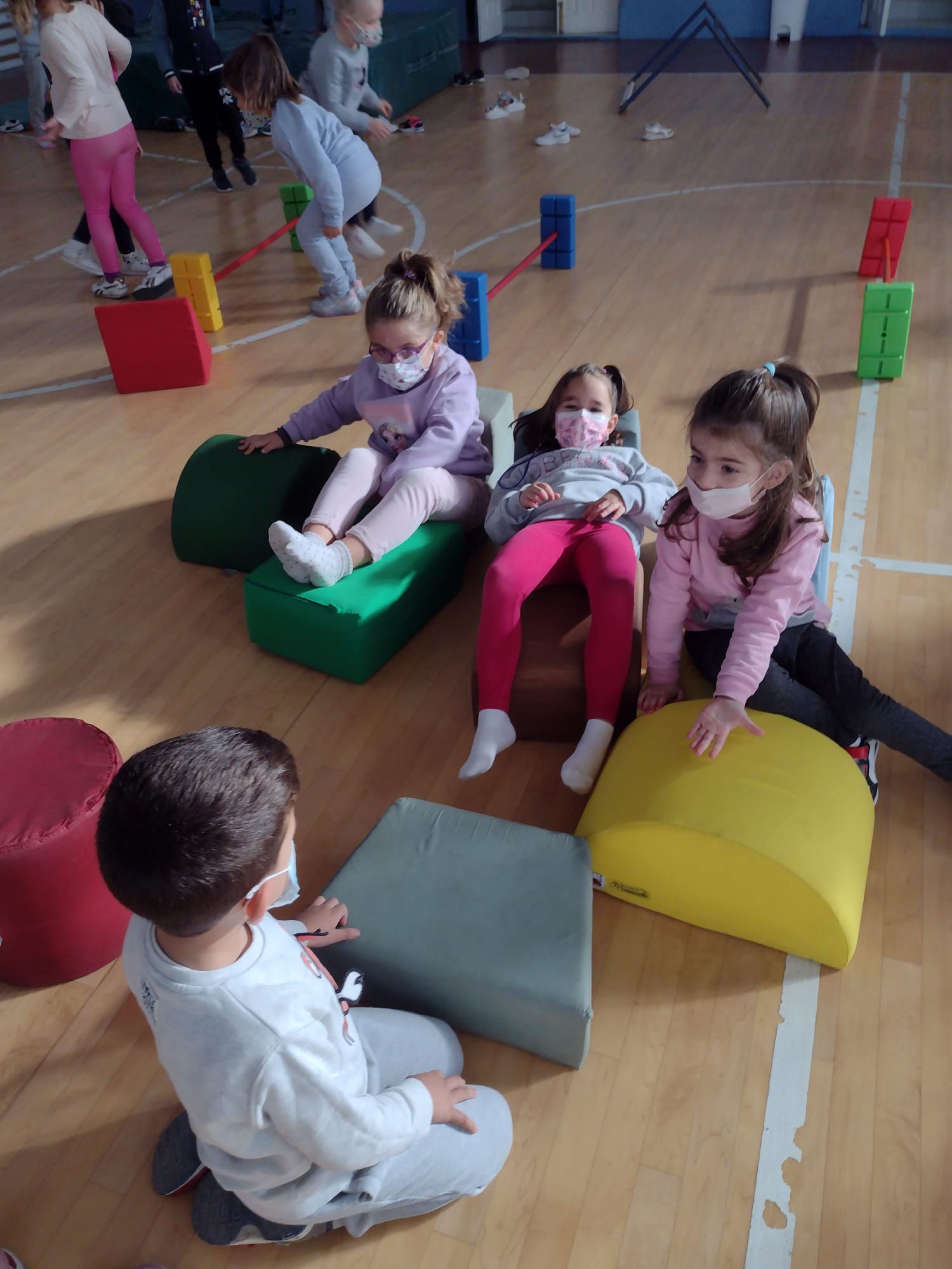 Como ya hemos presentado en otras ocasiones, periódicamente nuestros peques disfrutan en el gimnasio de una sesión de psicomotricidad de estaciones de juego libres.