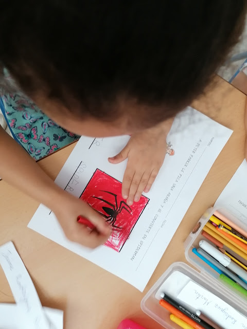 Hoy toca conocer a Spiderman, pero saber que era él, tuvimos que resolver entre todos un puzle, ya un poco más difícil, con cortes diagonales.