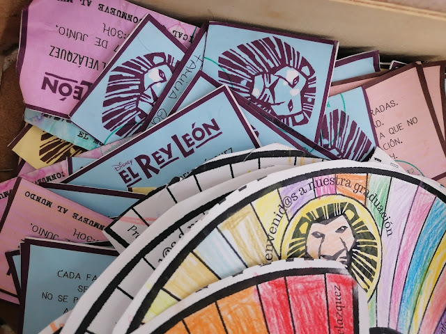 Nosotras preparamos las entradas para las familias y nuestr@s peques abanicos, sabíamos que ese día haría mucha calor.